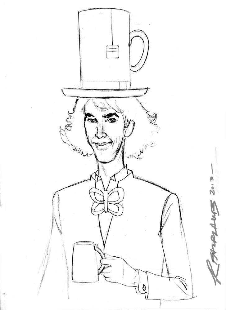I did this B/W sketch for Twinings Tea as Benedict Cumberbatch was starting 'Sherlock'. Inspired choice for the Mad Hatter I reckon. I was also asked to do 48 sheet posters with the Mad hatter Imagery.